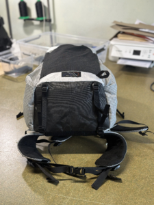 • Pas d’attache, il y aura quand meme deux petites boucles de grosgrain en bas du sac qui vous permettrons ponctuellement d’attacher piolet et baton avec un bout de corde de 2-3mm x 20cm.